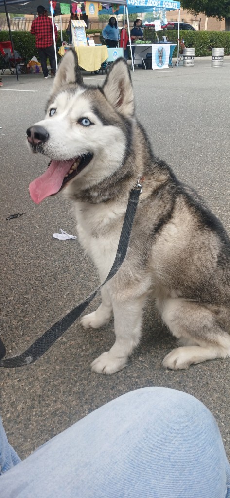 Bo was found running the streets right outside of South LA shelter. Quite literally we opened the car door to check on the small animal we saw run by only for him to jump right into the front seat like he knew. Remaining unclaimed, Bo has become a volunteer favorite. Enjoying volunteer park and hike days, we have learned Bo is quite the corky character. He’s done well with slow introductions to dogs pf his size. He lives up to the husky talker personality. HE has done great in a crate and overall at events and with volunteers’. He’s overall an amazing dog who has remained overlooked. Inquire to adopt today!